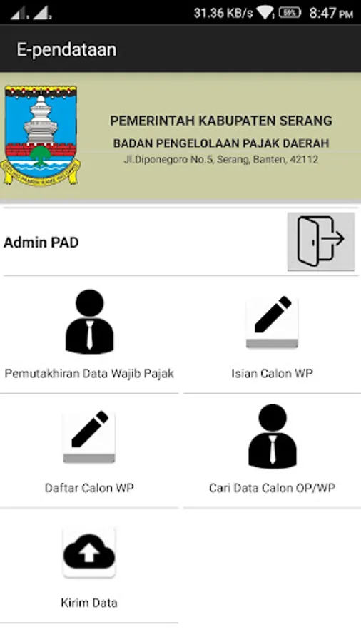Serang District e-Data Collection is addressed to Bapenda of Serang Regency