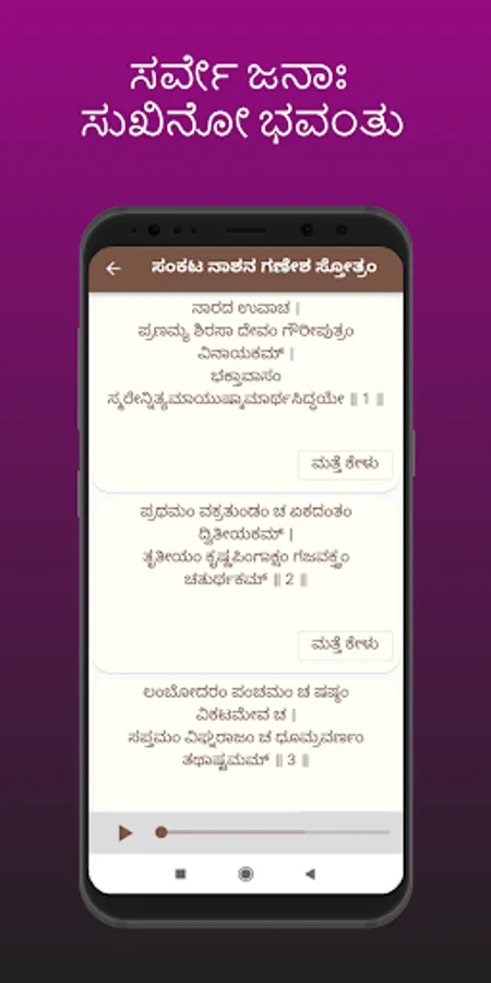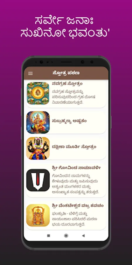 Stotras Kannada is devotional app to learn every stotram in Kannada, and this app contains all Stotras with lyrics, meaning, and audio to learn Stotras easily with repeat the sloka option.