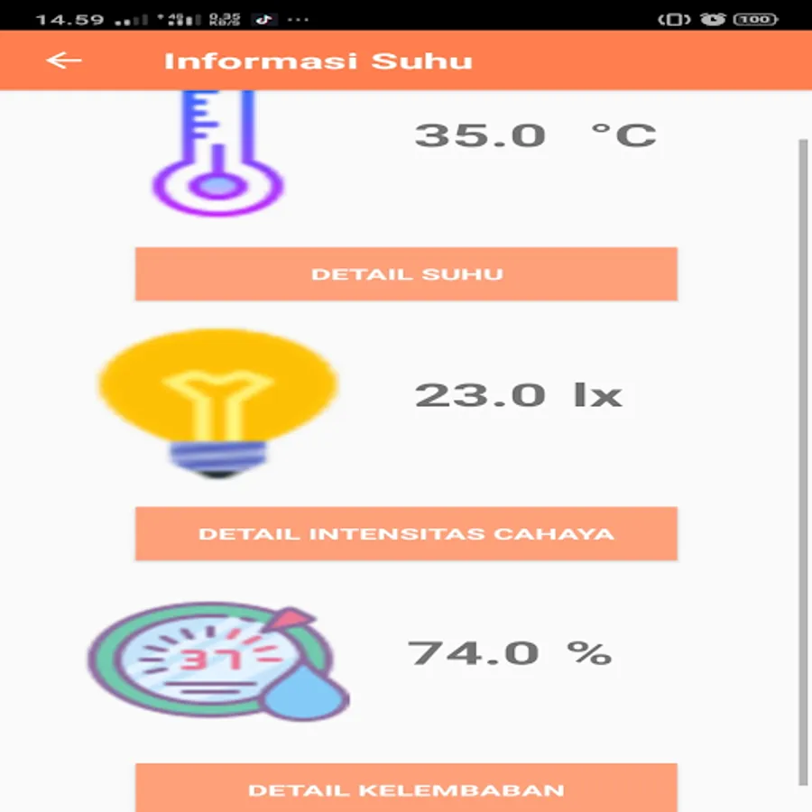 Sensor.TYPE_LIGHT, digunakan untuk mengukur intensitas cahaya saat ini sesuai banyaknya cahaya yang diterima ponsel. Battery Temperature System, digunakan untuk mengukur suhu baterai pada ruangan. API Openweathermap, digunakan untuk memperoleh data tingkat kelembaban udara berdasarkan lattitude dan longitude.