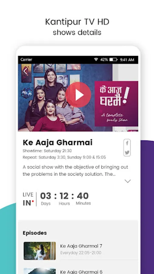 Kantipur TV HD, the most popular TV channel in Nepal, brings Nepal to its audiences. Its programmes provide in-depth analyses about the issues of the day and reflect the people’s voice. Its shows explore the multidimensional impacts of important events, by framing them in formats that range from news bulletins, interviews and features to satires, comedies, and social drama. Kantipur TV HD captures the many colors our lives are imbued with.