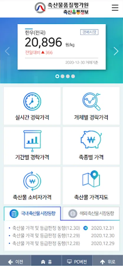 You can check the real-time meridian prices of cattle and pigs in the nationwide wholesale market, and you can check information related to production, distribution, consumption, and policy of domestic as well as foreign livestock.