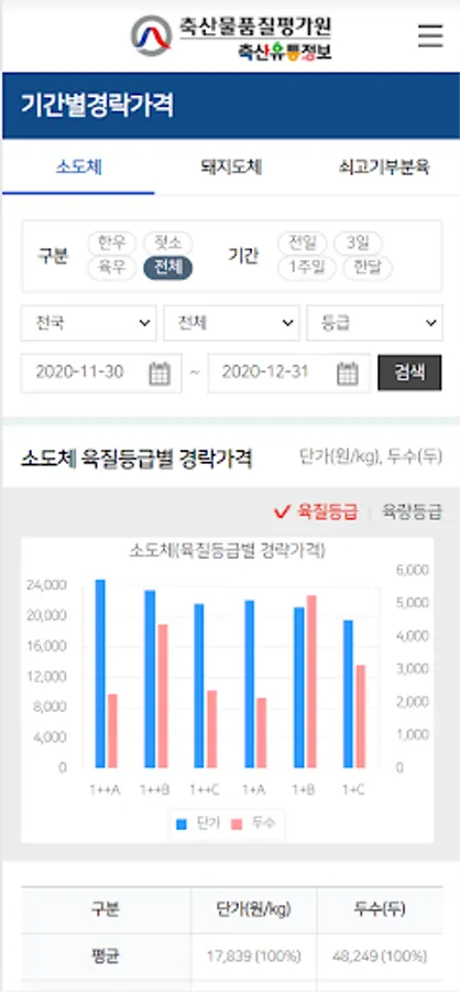 We provide representative prices of Korean beef, beef cattle, and Korean pigs and the latest livestock news every day.