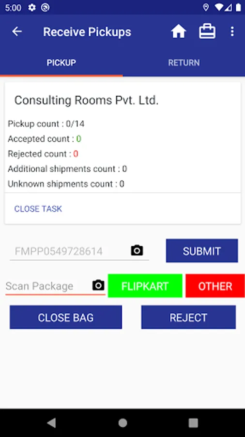 FirstMile App of Ekart(logistics arm of Flipkart) is used by Field Executives for pickups and returns of shipments from Sellers to Hubs.