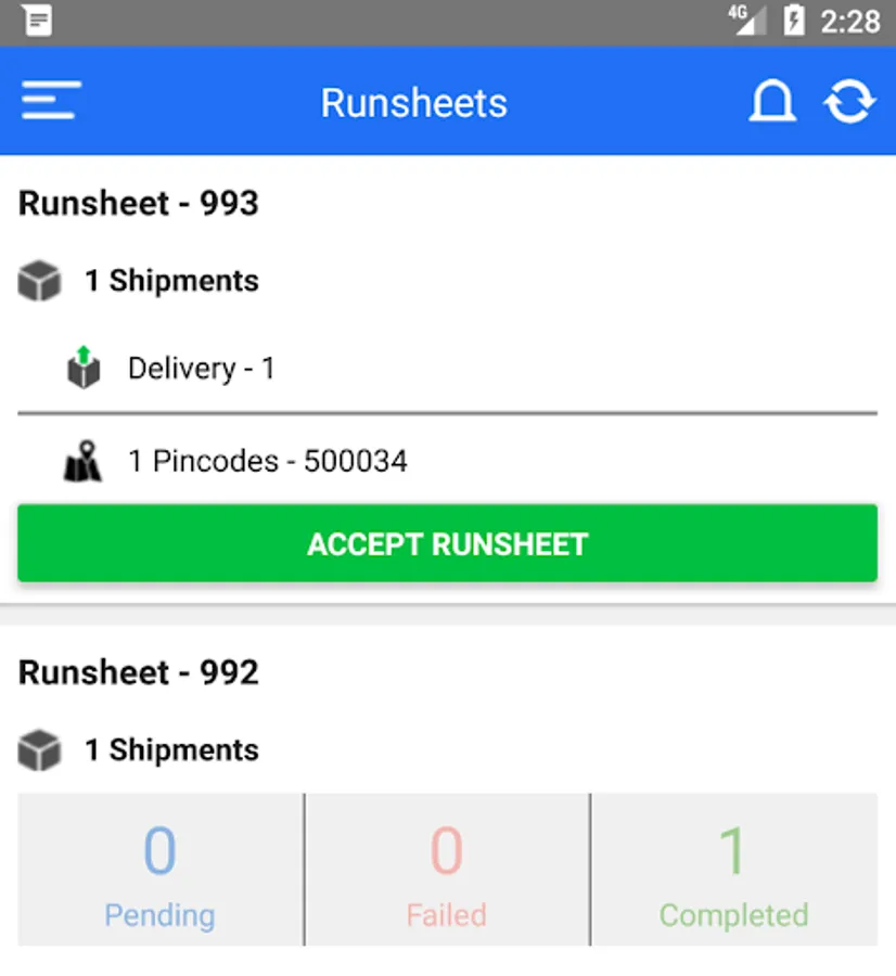 Unified App for City logistics of Ekart (logistics arm of Flipkart) is used by field force for making Flipkart shipments delivery and pickup.