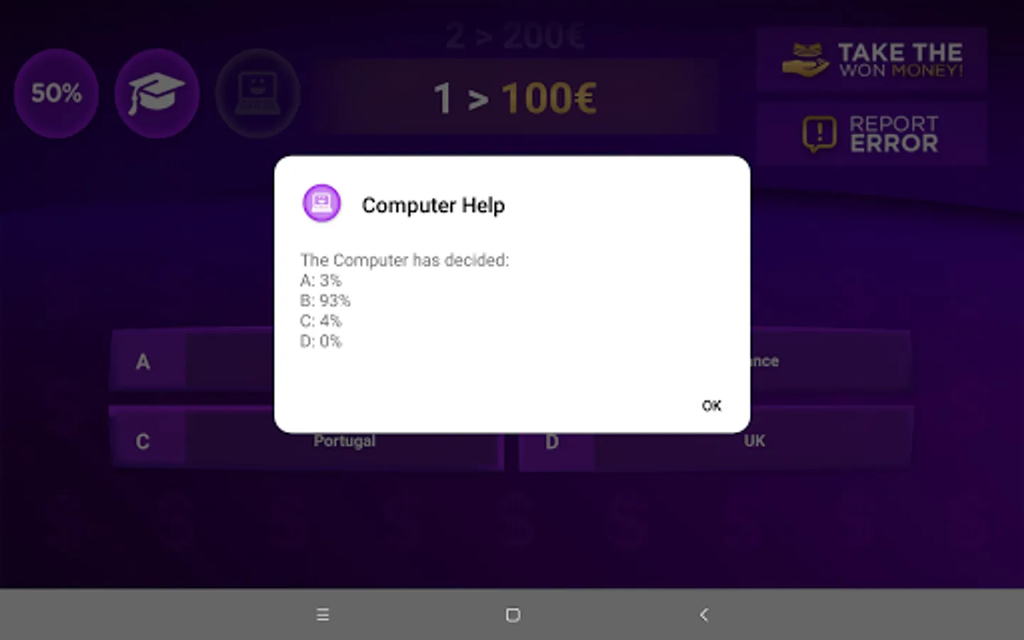 If you find it too difficult to become a millionaire, feel free to use the three aids.