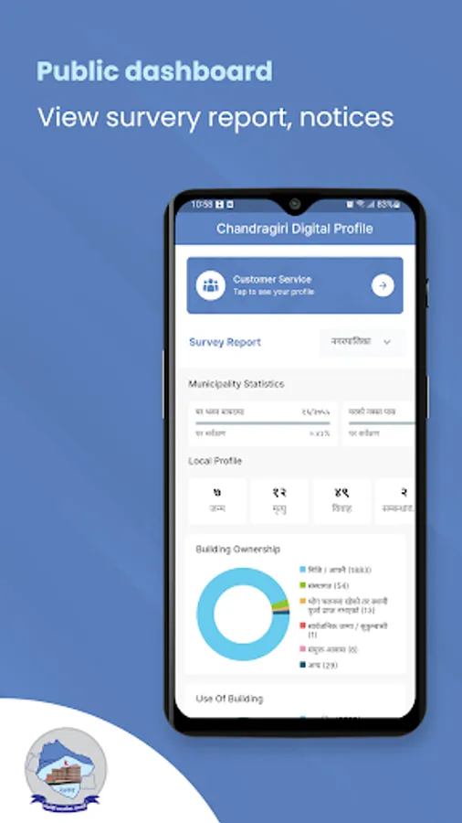 The GIS-based digital system of Chandragiri Municipality is one of the visionary gateways toward digital local governance. Chandragiri Municipality has a specific vision to maintain a household-level digital spatial database and to deliver essential services through the digital platform. This system enables to the integration of household-level databases with metric system house numbering, GIS-based digital base map, and institutional information. Citizens have the choice to get a few services from this plate form with two-way data sharing. Furthermore, the system entirely supports municipality administration in real-time planning, monitoring, and implementation of projects. It enhances municipality administration capacity in service delivery.