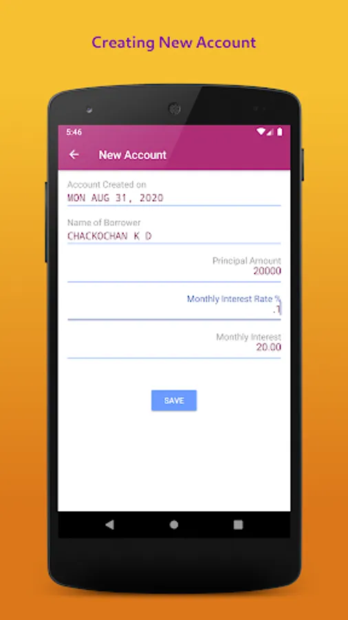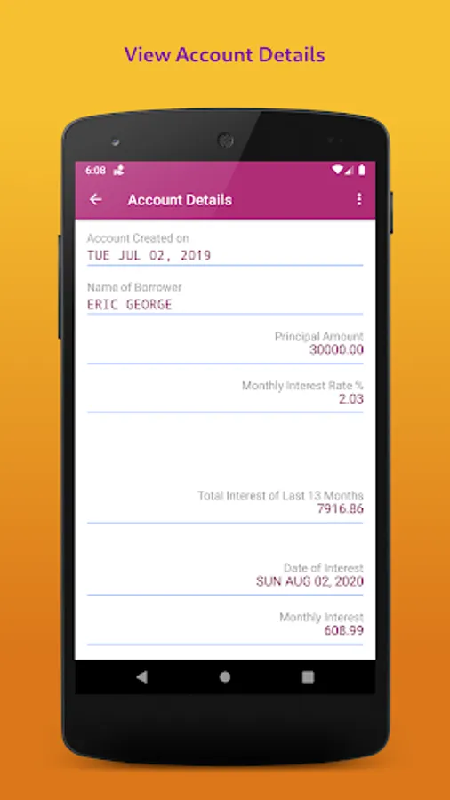 * Add New Account with: Name, Principal, Rate of Interest