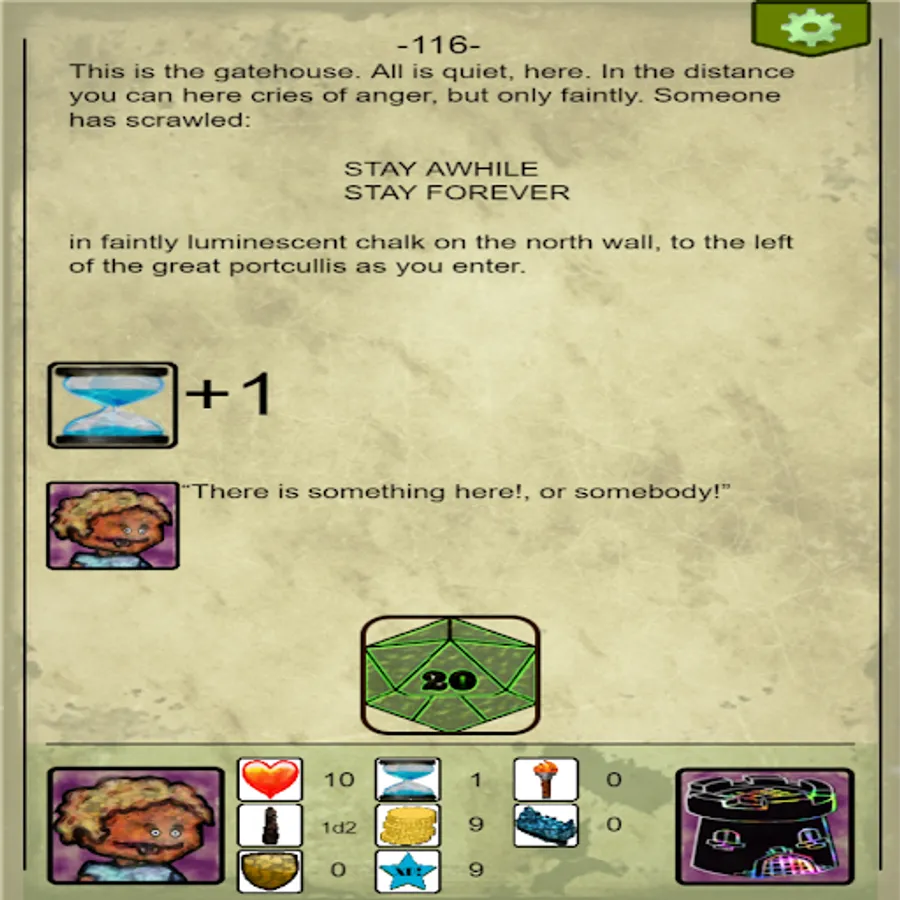 Move yourself through the Keep, take decisions and fight with the different creatures using the dices and the special abilities that you will achieve as you increase the level of your character.