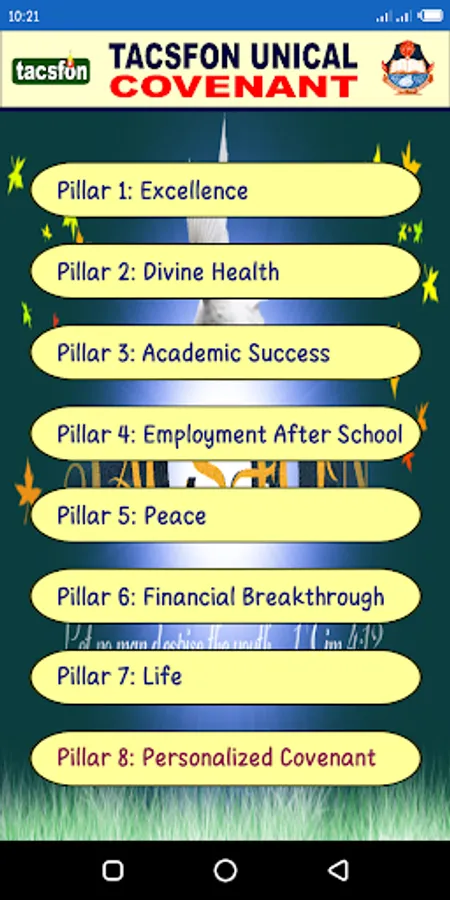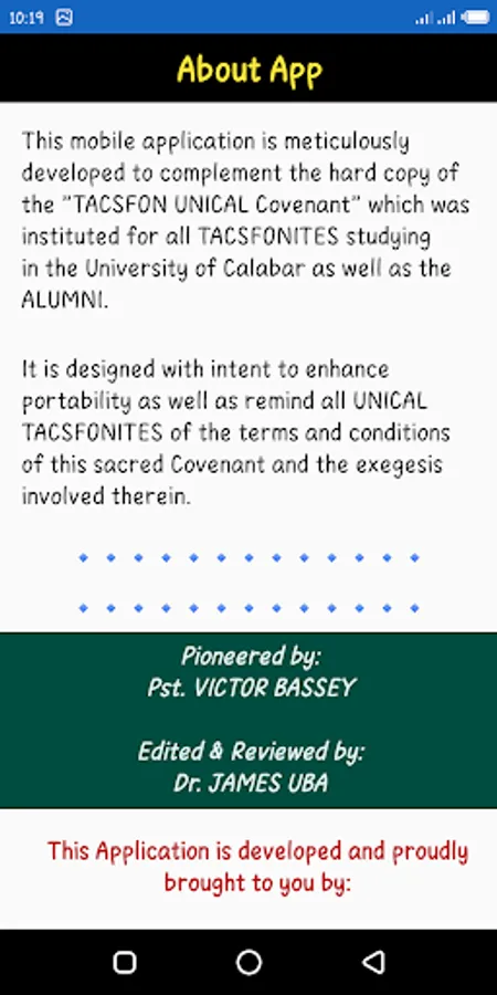 The mobile app for the sacred "Covenant" God made with TACFONites in the UNIVERSITY OF CALABAR.