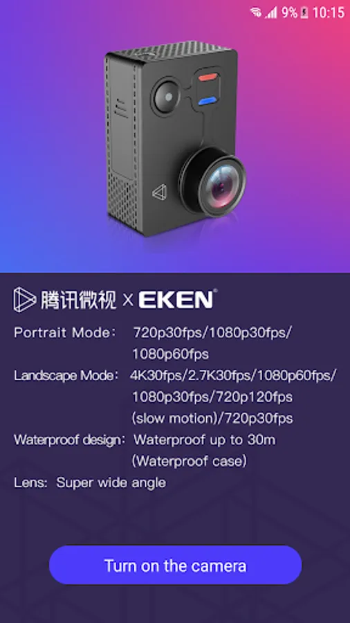 微视 X EKEN allows you to see what your camera sees on your smartphone in real time. You will also be able to take pictures and record videos using your smartphone as a remote control. In addition, use it to download files from your camera and more.
