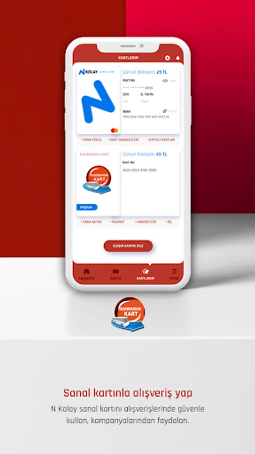 You can have an N Kolay virtual card by signing up for the KahramanKart application now. You can use it safely for your online shopping by loading money into your virtual card and you can benefit from various campaigns.