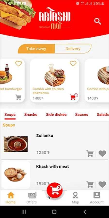 The customer can make an online order and make a payment through the application by attaching a non-cash method to his bank card or simply choose the cash payment option.