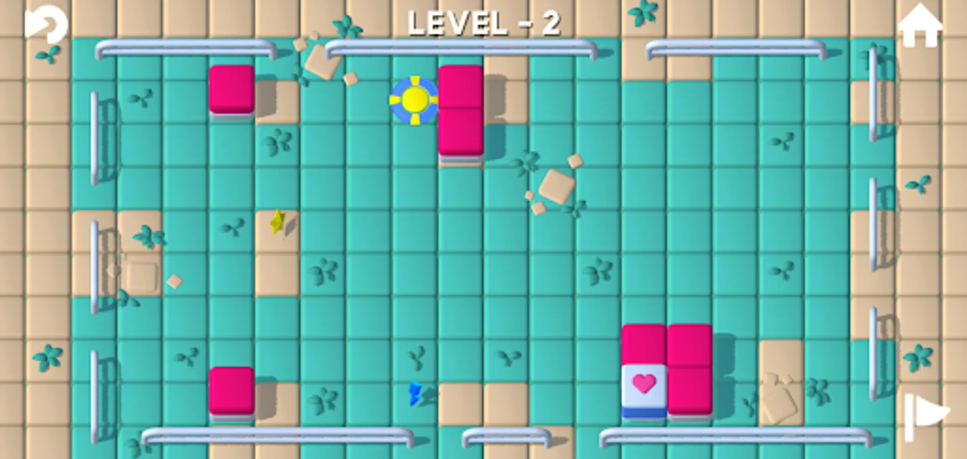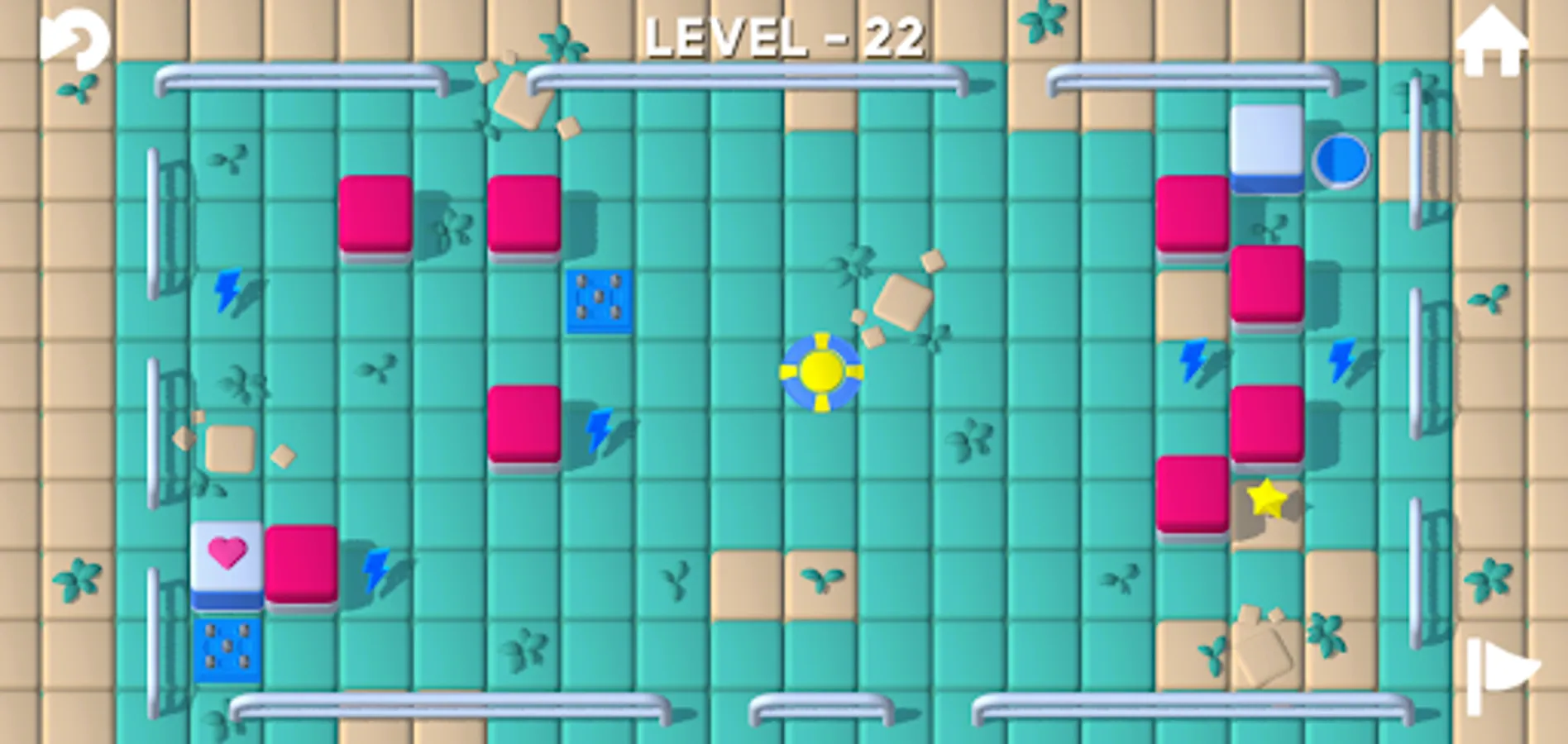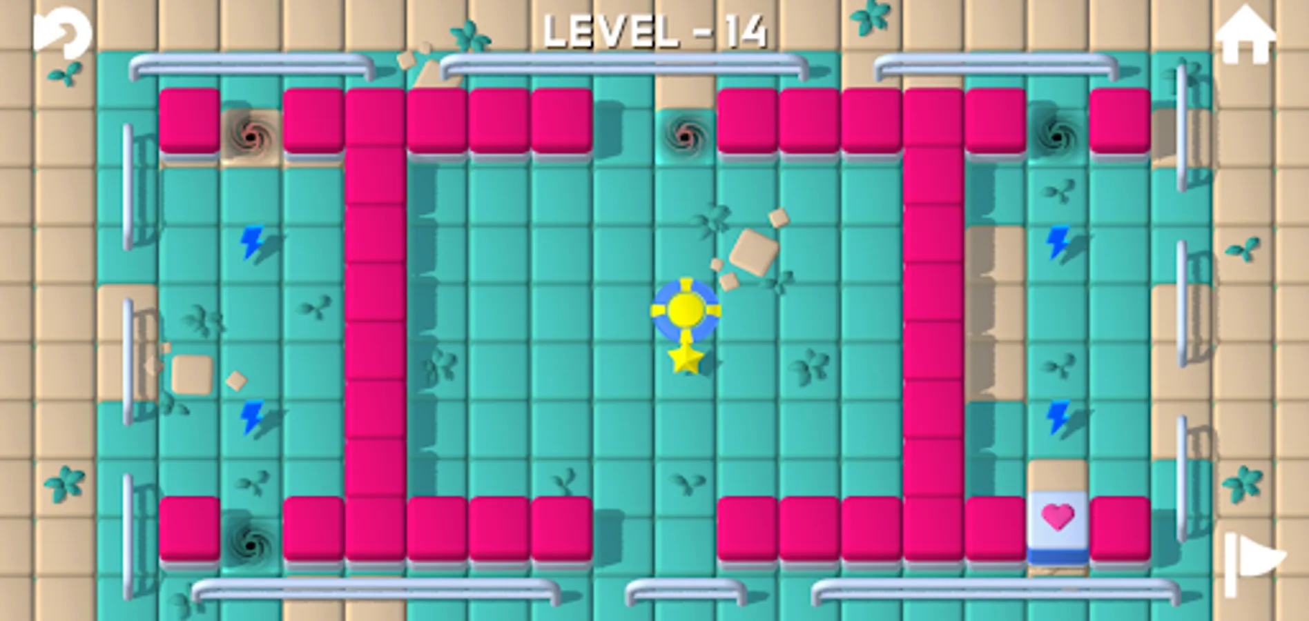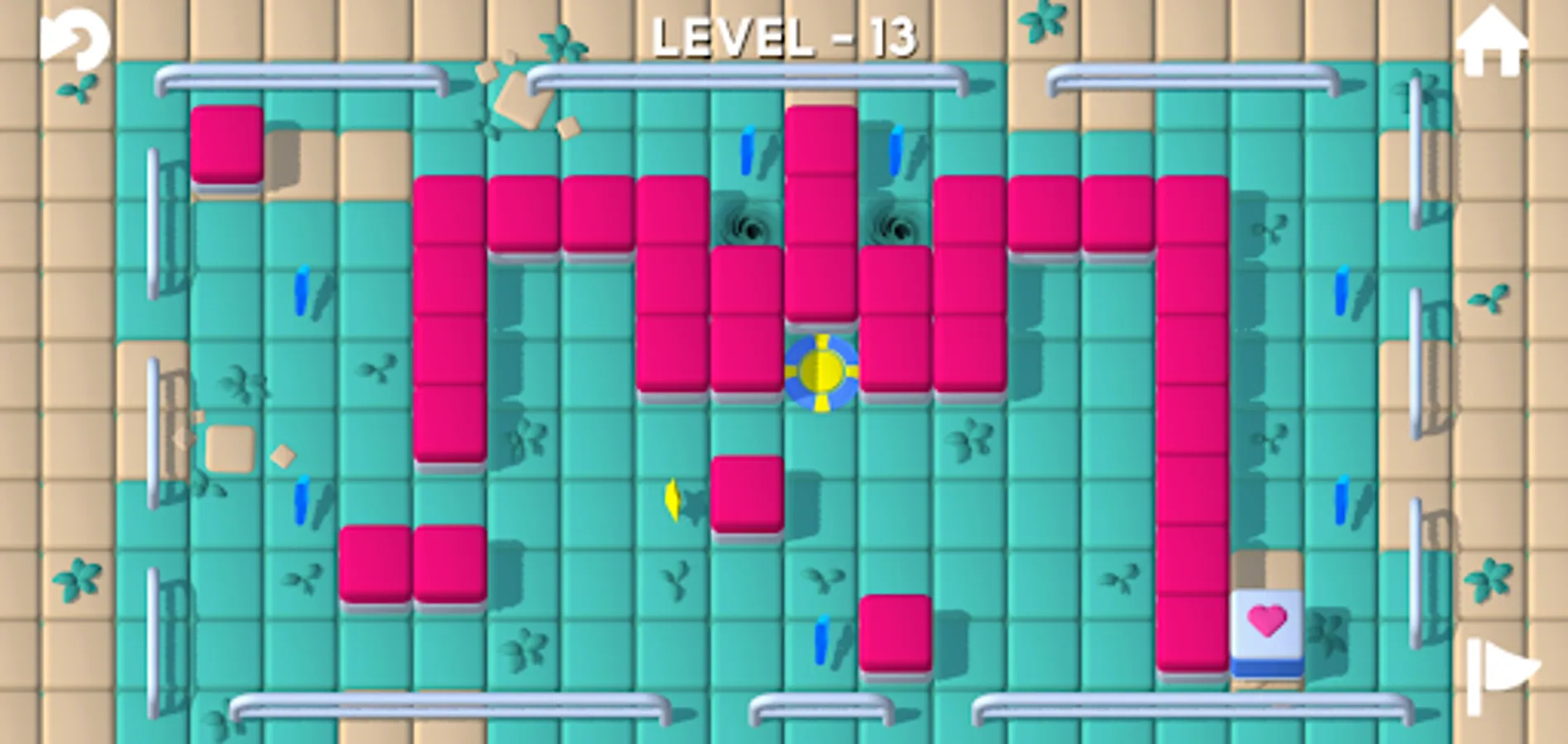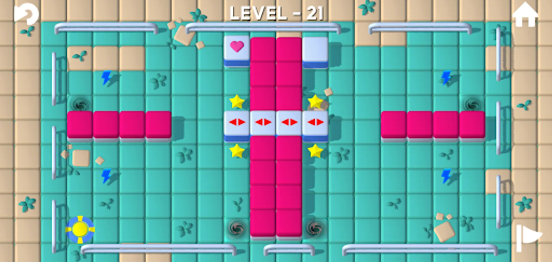 The goal is to get the heart cube to the teleport by moving the block by swipe and activate the teleport by collecting energy along the path on this tricky maze.
