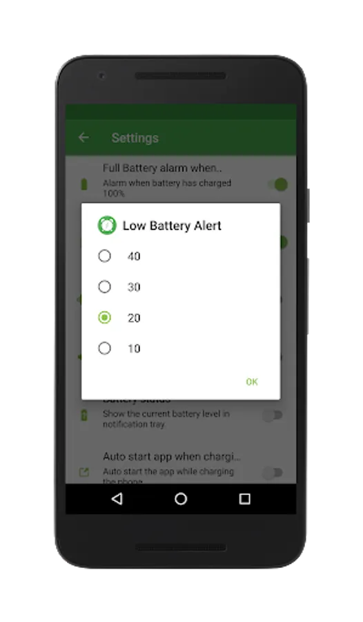 Battery Alarm prevents your mobile phone battery from being overcharged.