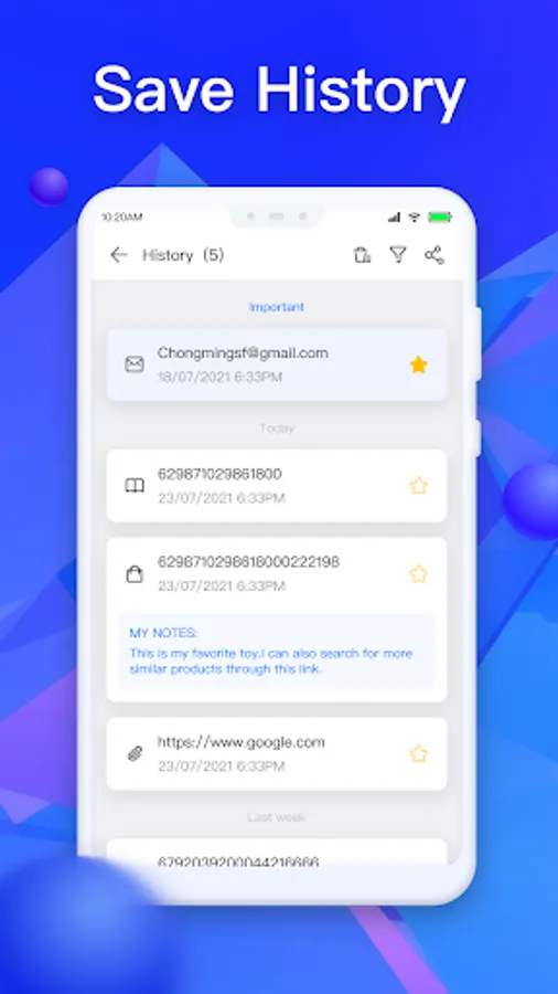 Manage unlimited history and export it (as CSV file). Import it to Excel or save it to any cloud storage such as Google Drive.