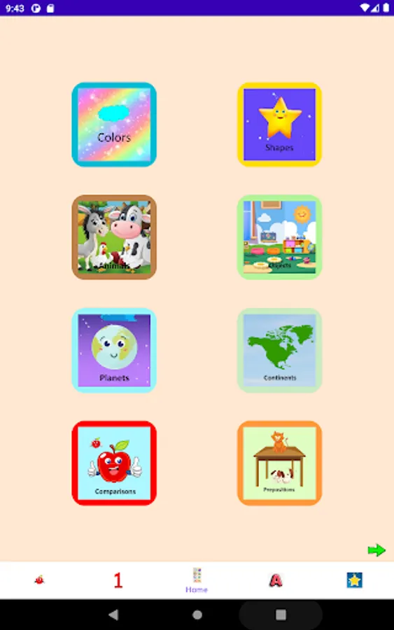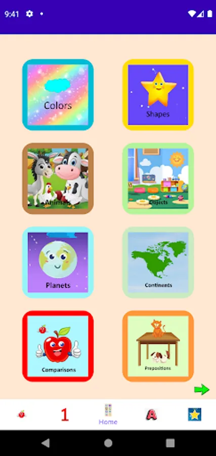 An educational app for kids (ages 2-6) with easy navigation. It comprises of simple and kid-friendly images with sound effects. It also provides audio feedback for learning.