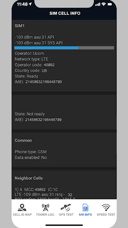 Information about sim cards, network signal, neighboring cells.