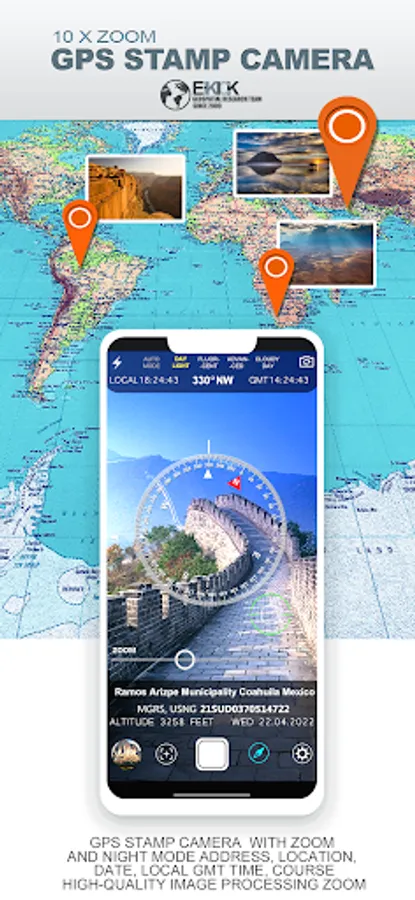 Stamp camera allows to easily take a high-quality picture, with date and time, photo and location