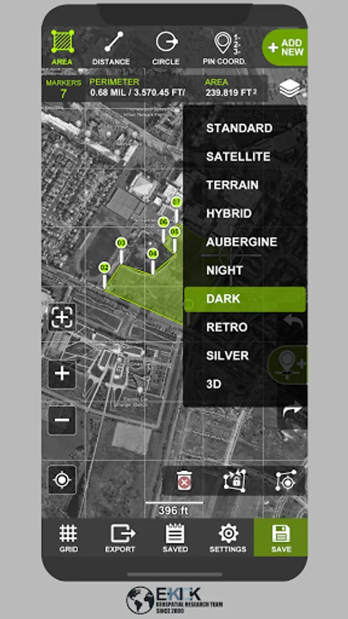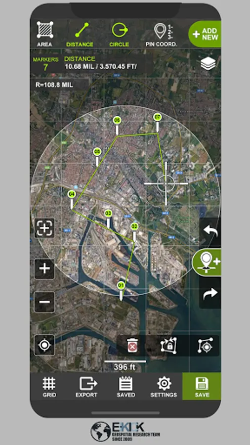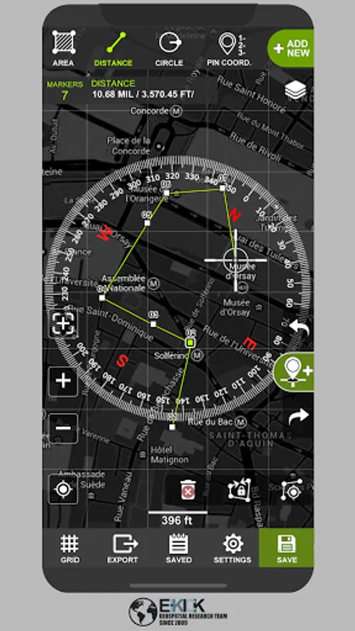 Tactical pro tool for measuring areas on the map. Place your points on the map and then calculate area between all point, calculate total Area of ant Route.