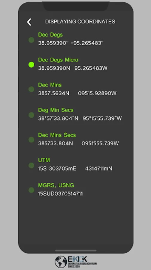- Dec Degs (DD.dddddd˚)