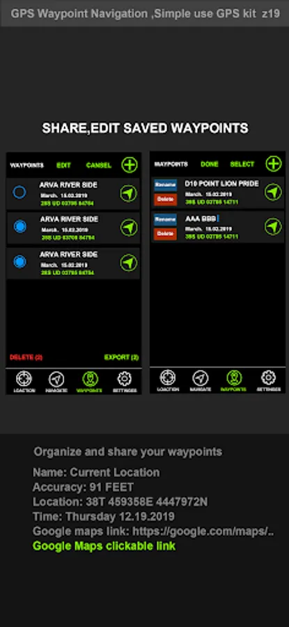 They can use their current location or drag and drop a pin on a map. Simply swipe right from the "Add" screen to access Waypoints.
