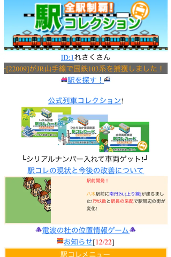 駅コレはケータイの位置情報を使って、全国の駅を集めるスタンプラリーのような位置情報ゲーム。