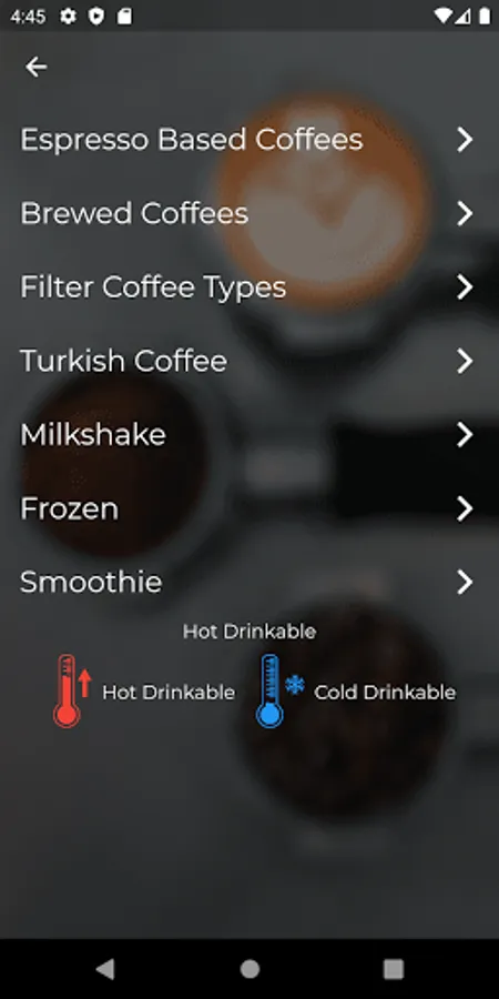 • Hot and Cold Drinking of Coffees