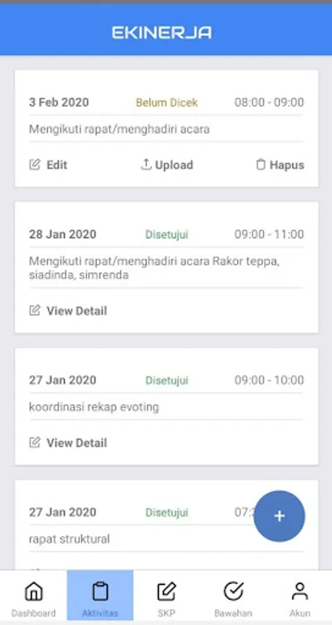Data collection system, monitoring and management of activities and work activities (performance) of Sleman Regency employees. Managed by the Personnel, Education and Training Agency.