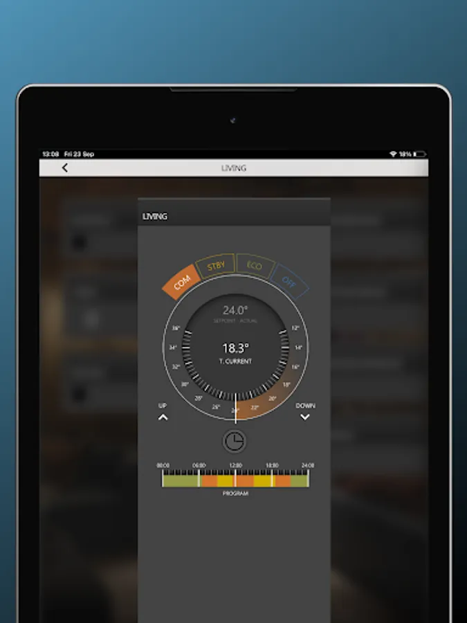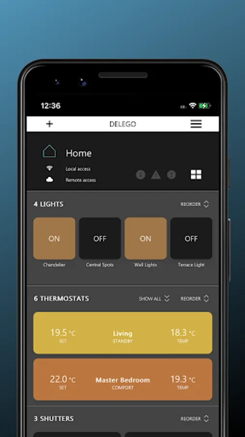 Ekinex® Delègo monitoring system is provided with an App for smartphone (operating systems: Apple iOS and Android) that allows to communicate with the main server, previously programmed. Thanks to this you can control and visualize from your device every function of your KNX home automation system.