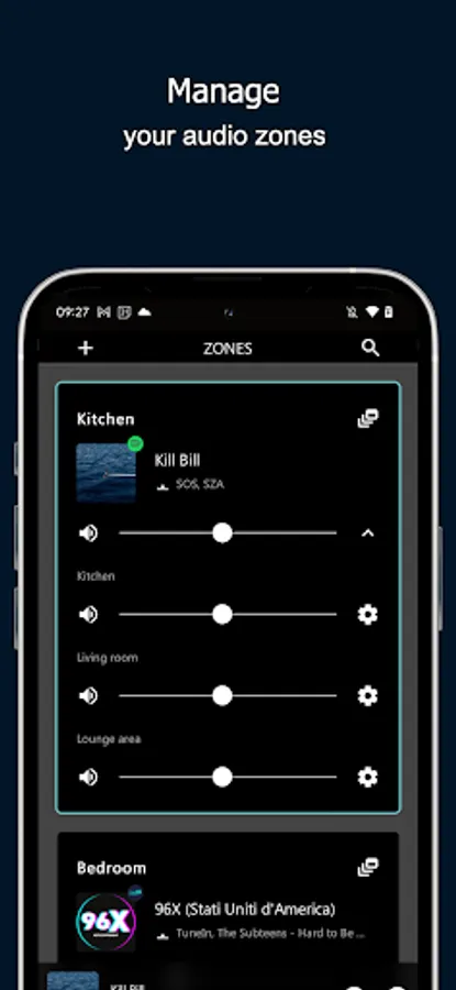 • Manage groupings of multiple streaming amplifiers by audio zone.
