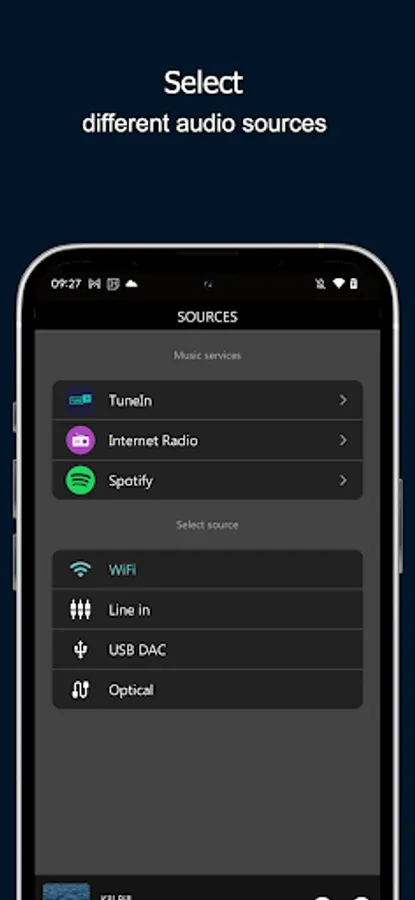 • Manage sources between Online, Line in, USB DAC and Optical.
