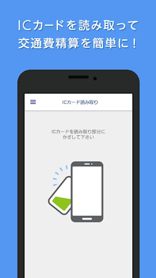 ご利用中の交通系ICカードをスマートフォンのIC読み取り部分に近づけて読み取りを行います。