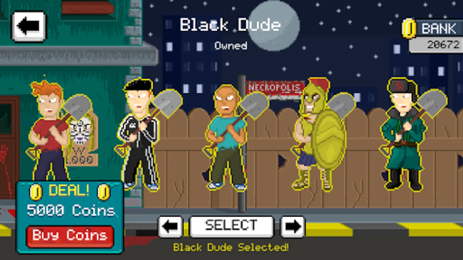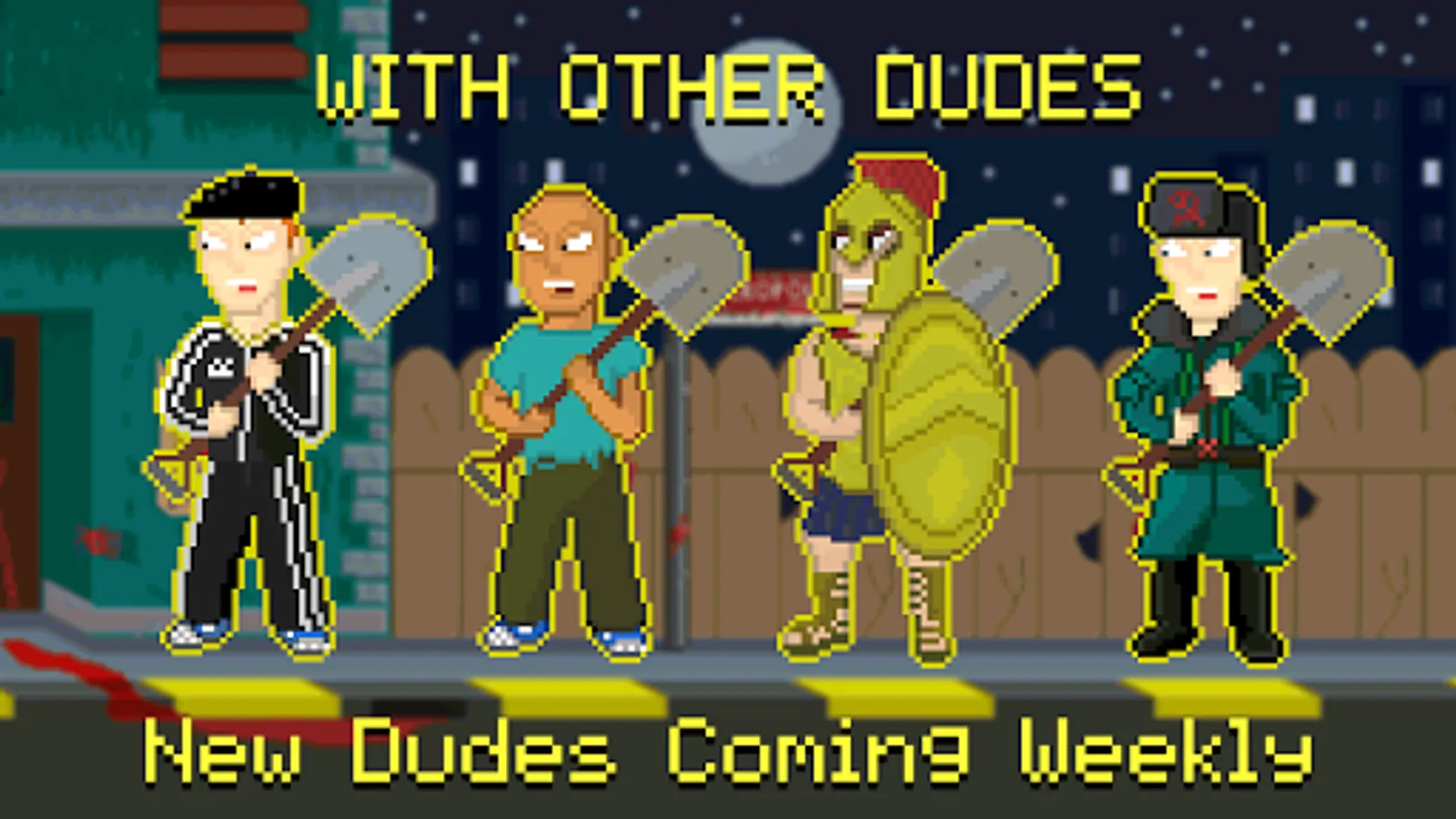 Choose your dude and clean the streets. This is a shovel punching game, you kill your enemies with your shovel.