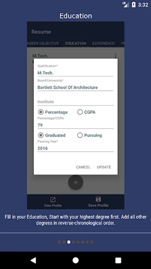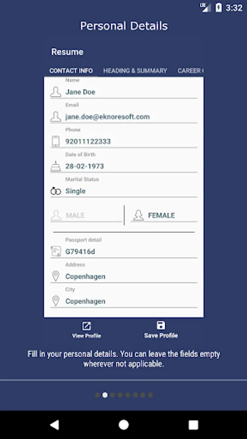 Now you can instantly creates simple and professional resume for your interview on the go using this app.You can save your all the details for the further use so you don't have to enter the details every time. You can also create multiple resume if you want to create different kinds of resume or CV for different person.So start making Cv for job application and good luck.