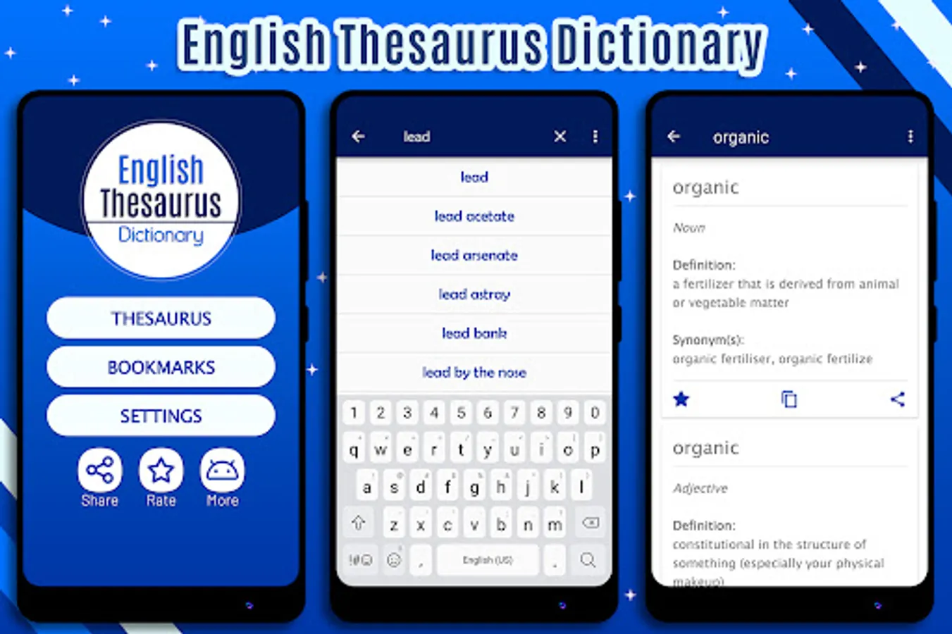 English Thesaurus Dictionary is a full english thesaurus dictionary app that will help you to expand your english vocabulary by simply browsing through 175,000+ words or using search option to get all possible definitions with examples and multiple synonyms, that will make this English Thesaurus perfect daily using app for everyone.