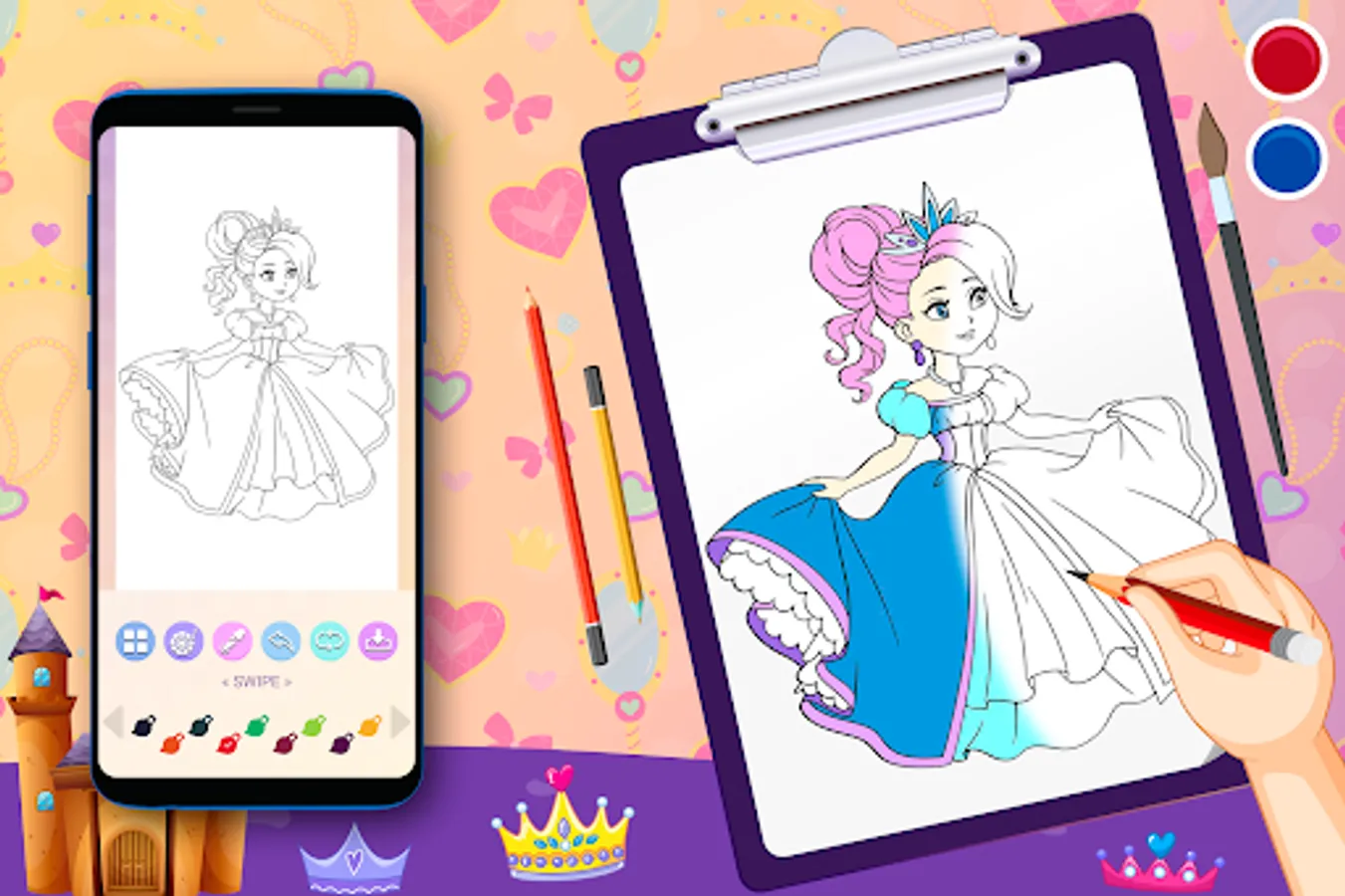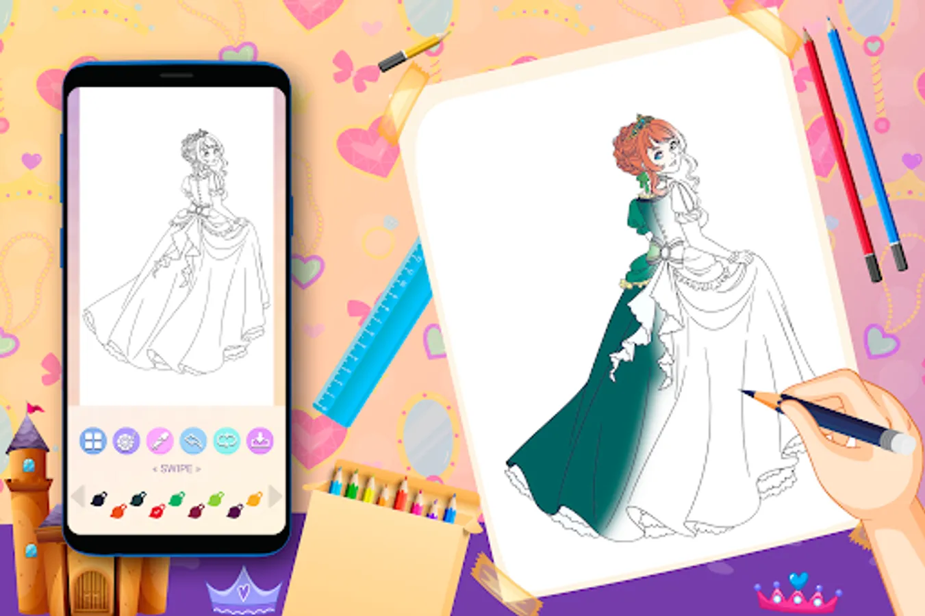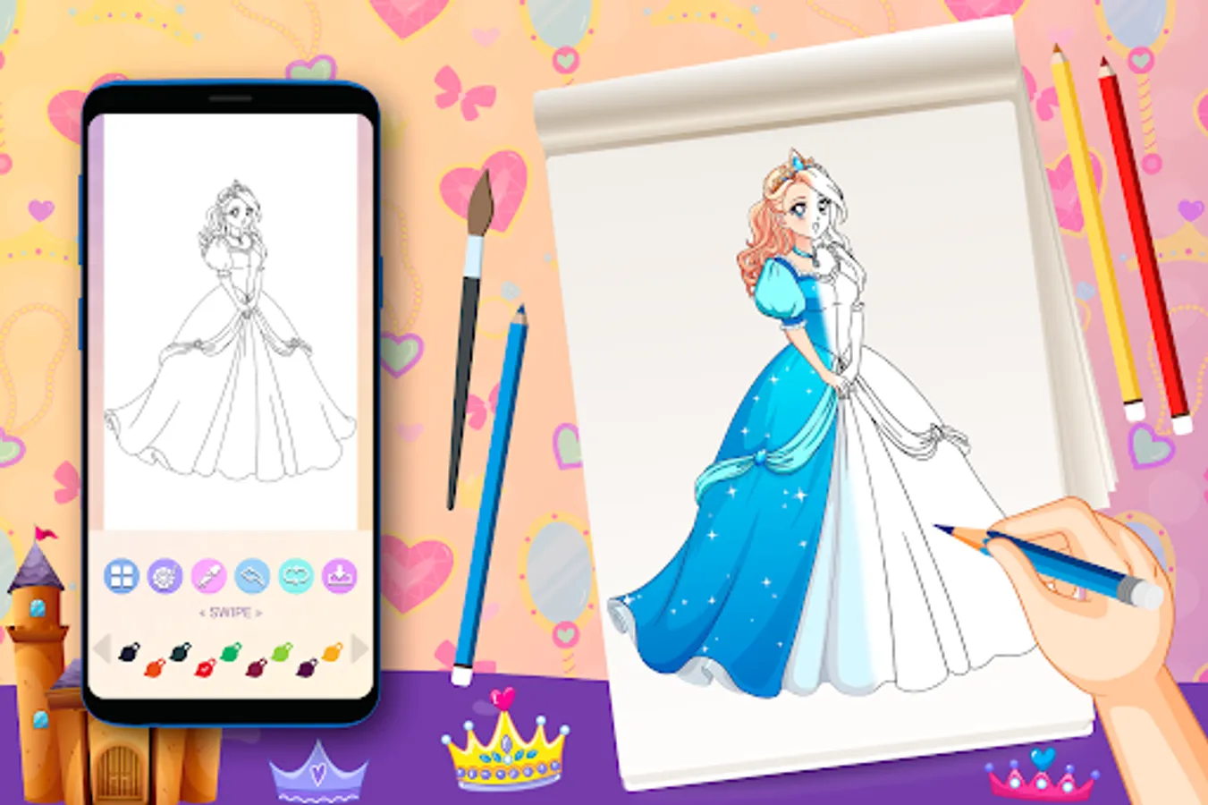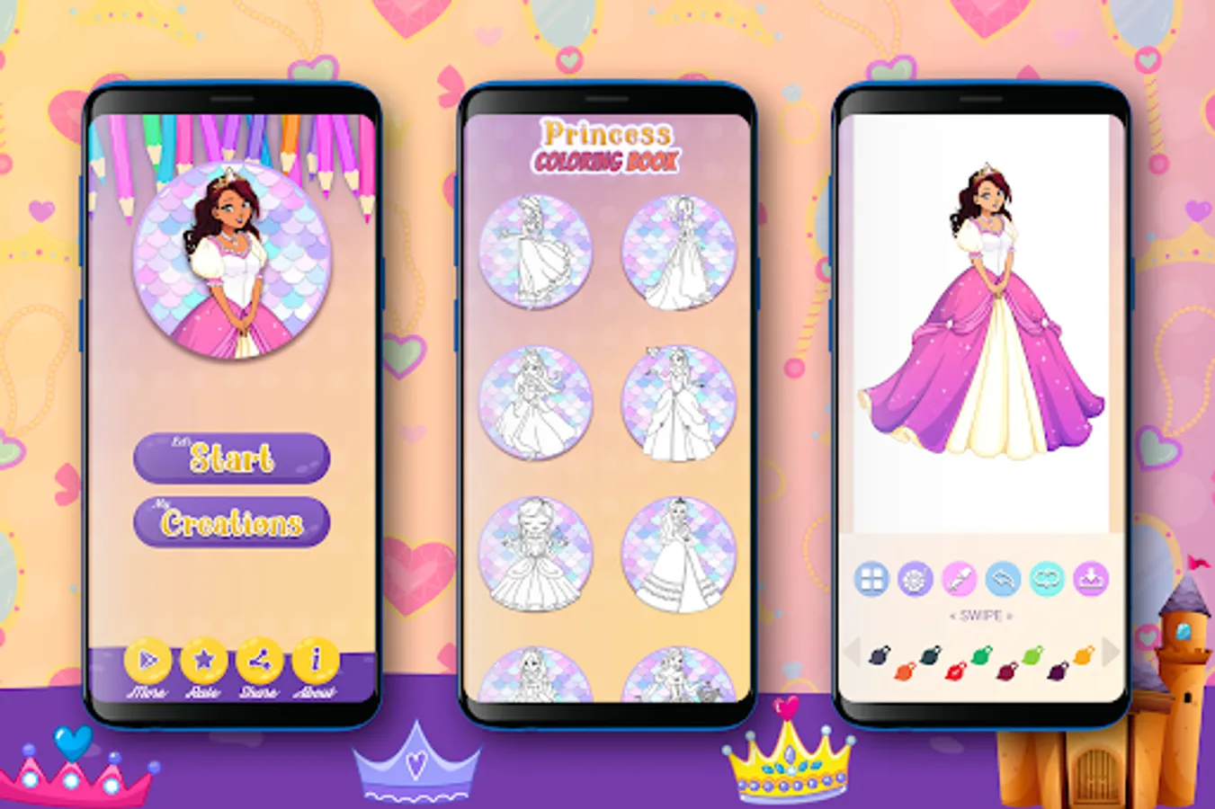 Its ideal app for all girls who want to be future artist and love coloring and painting amazing princess coloring pages. Just select your favorite princess girl drawing and start coloring. Now color your favorite princess fashion with confidence by using this Princess Coloring Book app.