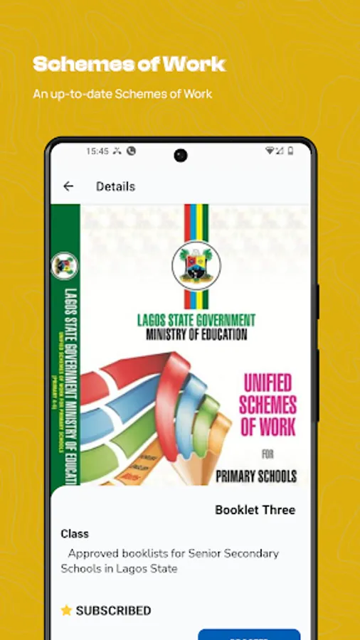 A digital platform for the delivery and sale of Lagos State Unified schemes of work which will enhance the operations of teachers and provide all schools (public & private) with access to the documents. This will help the department optimize the revenue generated from the schemes of work and reduce cases of piracy by third-party companies.