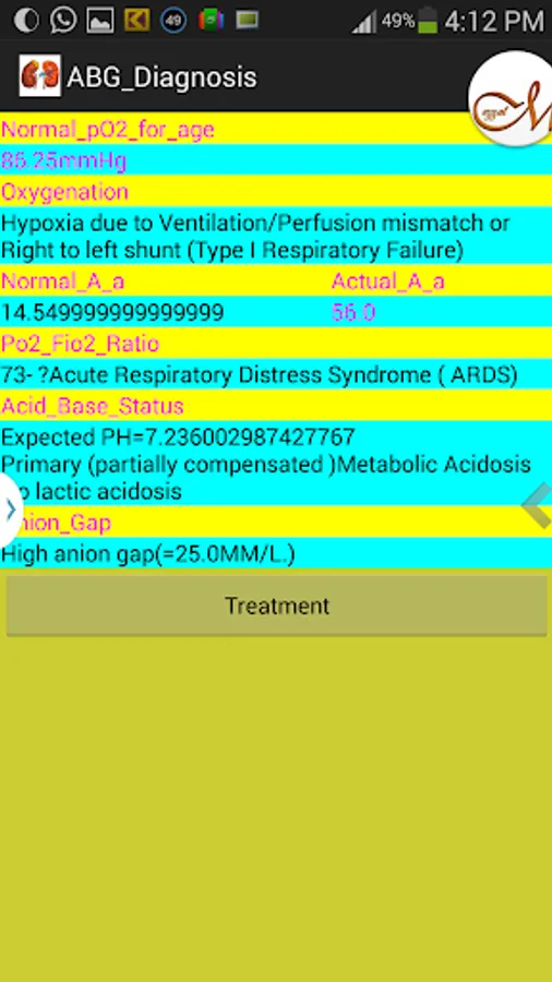 4-ABG ANALYSIS gives you detailed analysis of your patient's ABG ,as regard oxygenation and acid-base disorders,helping you formulate sound Diagnosis and better management plan.