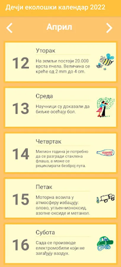 Children's Ecological Calendar 2022 is an application that introduces children to important environmental topics through interesting information and useful tips.