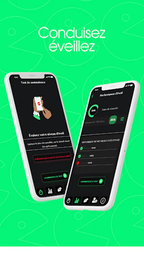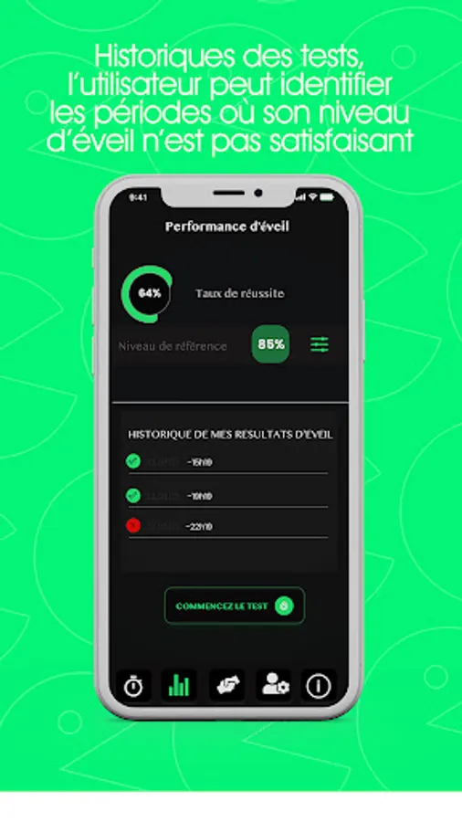 Thanks to the history of his tests, the user can identify the periods when his level of arousal is not satisfactory. The application is then useful in planning his trip by car.