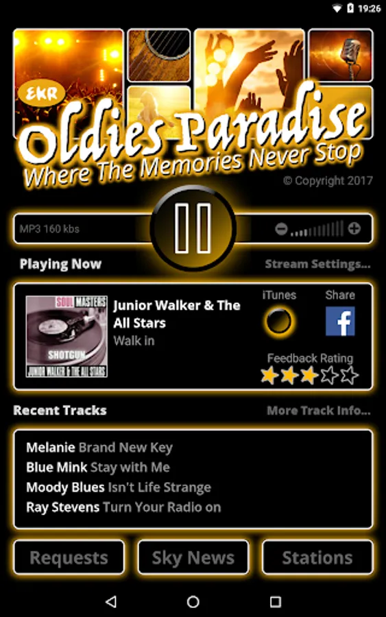 Our latest selection of channels (EUROPEAN KLASSIK ROCK, NOW ZONE, RETRO ROCK, OLDIES PARADISE, and EASY ROCK PARADISE are all available to listen to on this current release of the application. Drawing on a vast database of over 100,000 titles that include classic, current and unsigned artists we are pushing the boundaries of radio to a new, fresh and inspirational level.