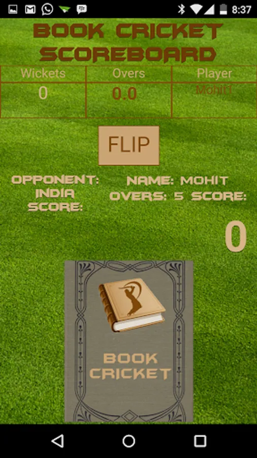 As you may be aware you have to randomly open the book to score runs and can play a 5 over 10 over or 50 over match.