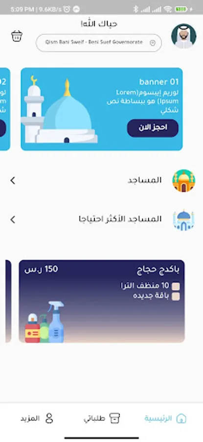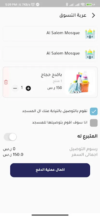 An electronic application that provides packages of cleaning materials at nominal prices for customers to donate to the houses of God, in honor of them, given their sanctity and special status among Muslims to maintain their cleanliness permanently.
