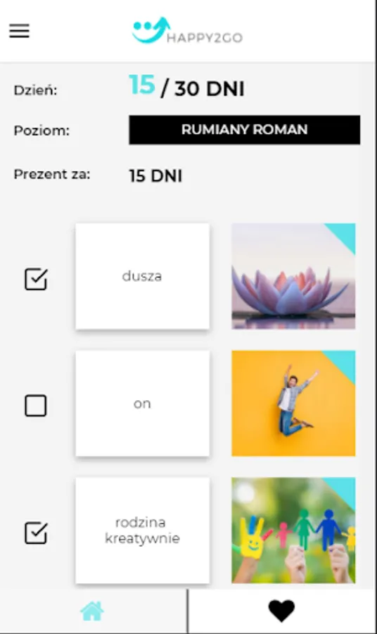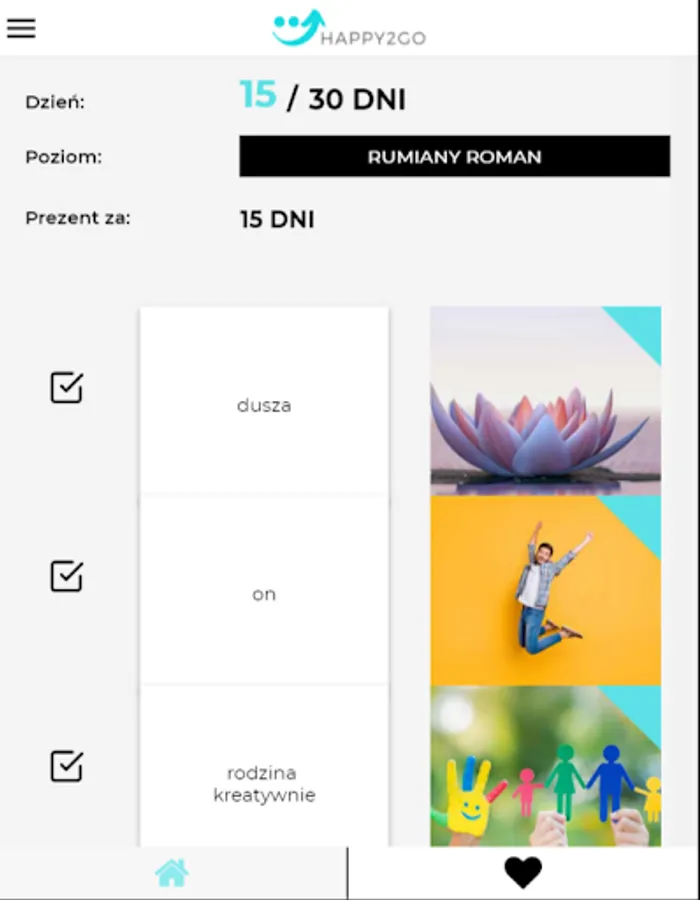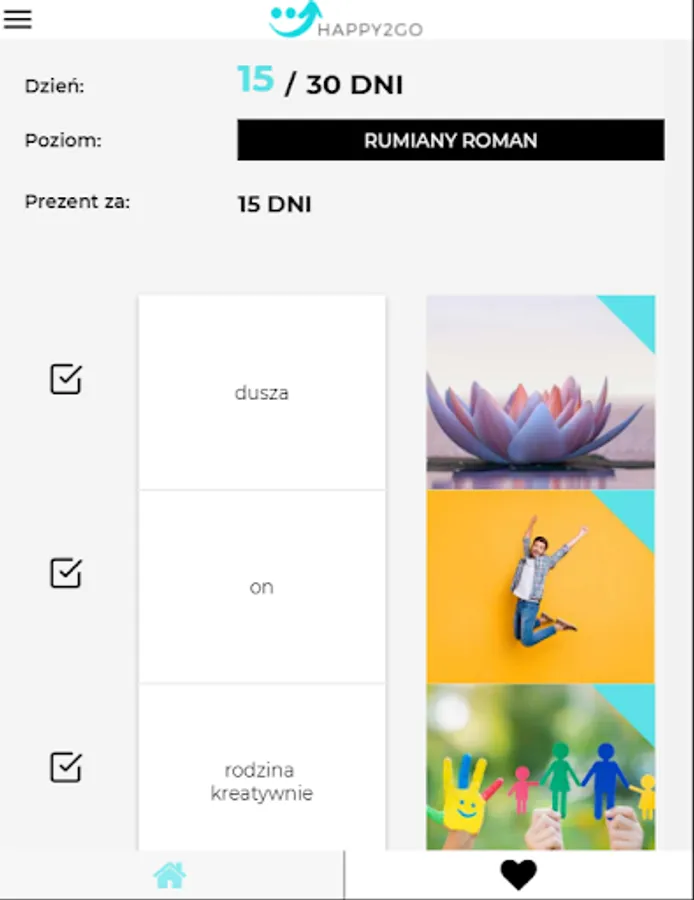Bonus: after 30 days with the application and going through all the tasks from the categories selected for this time, the user receives an e-mail with a pdf file, which also provides substantive value in the area of taking care of your own happiness.