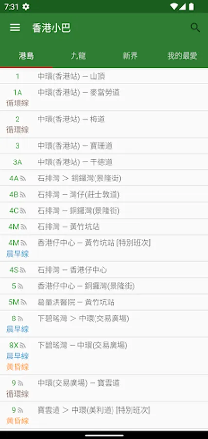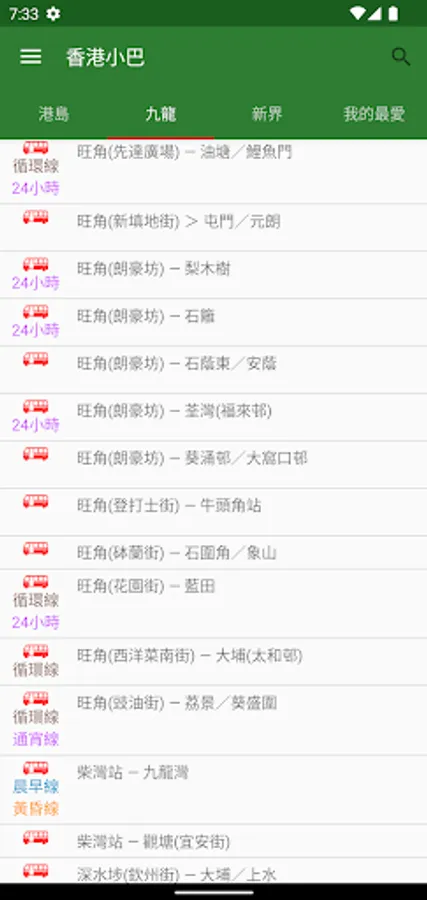 Contains 684 routes of all green special lines and red public light buses in Hong Kong