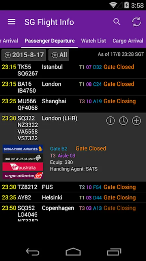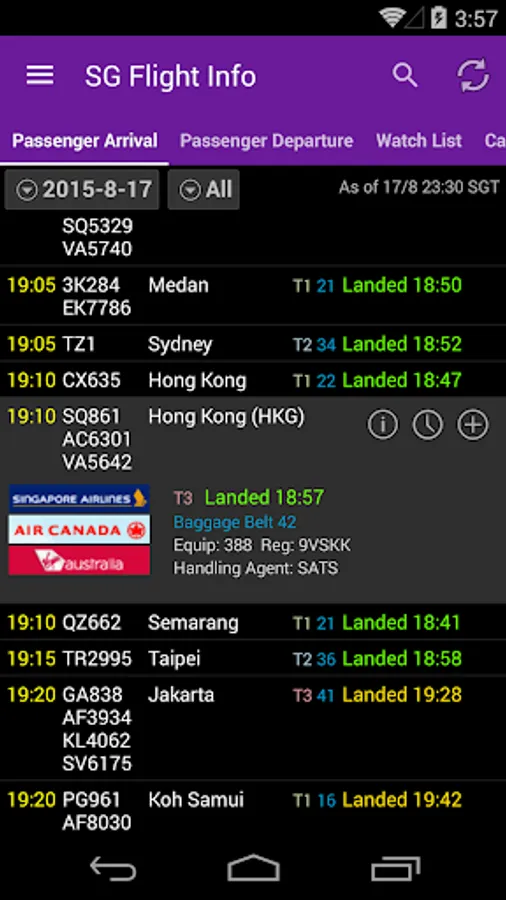 - Cargo/Passenger Flights of the day before yesterday, yesterday, today and tomorrow can be queried