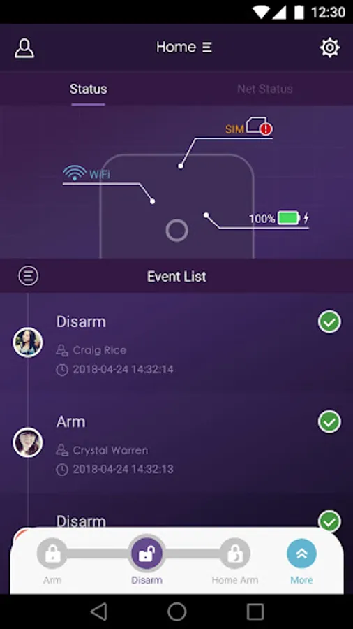 SEKUR IP app allows user to control the alarm system at any time, from anywhere, in real-time, including Arm, Disarm, Alarm (trigger SOS) or setting up the system.