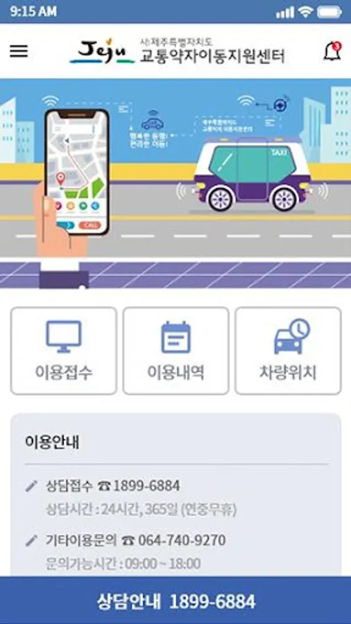 Step 1: Reception (date and time of use, destination, presence of passengers, time required, etc.)