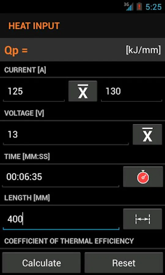 Simple calculator of heat input. Easily check your welding parameters. Calculation is according to EN 1011-1.