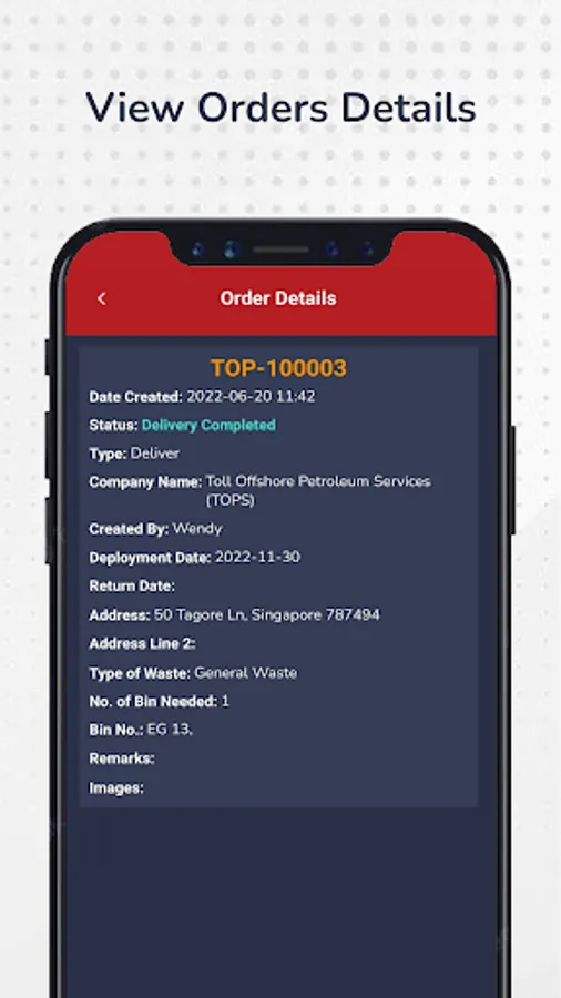 Eng Leng Waste Management is used to create, manage orders for delivery of bins.